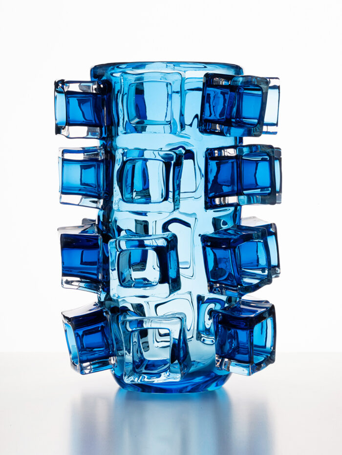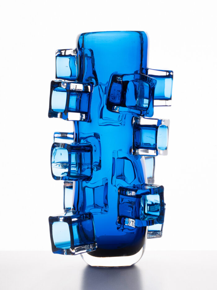 2111.01 A medium sized vase with randomly applied pieces of cryztal glass. Height 24cm/9,5”. Made in the Workshop of Glashütte Harzkristall. Glasmaster Korbinian Stöckle. Executed in 09/2021.